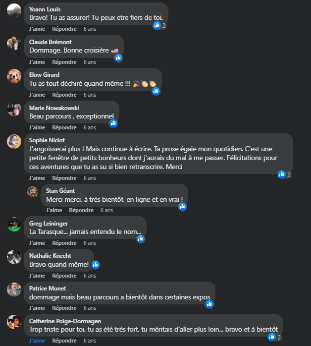 J’ai déjà tout dit… mais je vous regrette déjà car vs étiez un candidat sympa… j’aimais votre humour… vos connaissances variées… vous étiez un candidat comme j’aime… moi aussi j’ai participé à ce jeu… j’ai été nulle… perdu mes moyens mais une bonne expérience avec une équipe sympa… Profitez bien Stan de vos gains… et belle croisière… suis heureuse pour vous qui n’avez jamais voyagé…